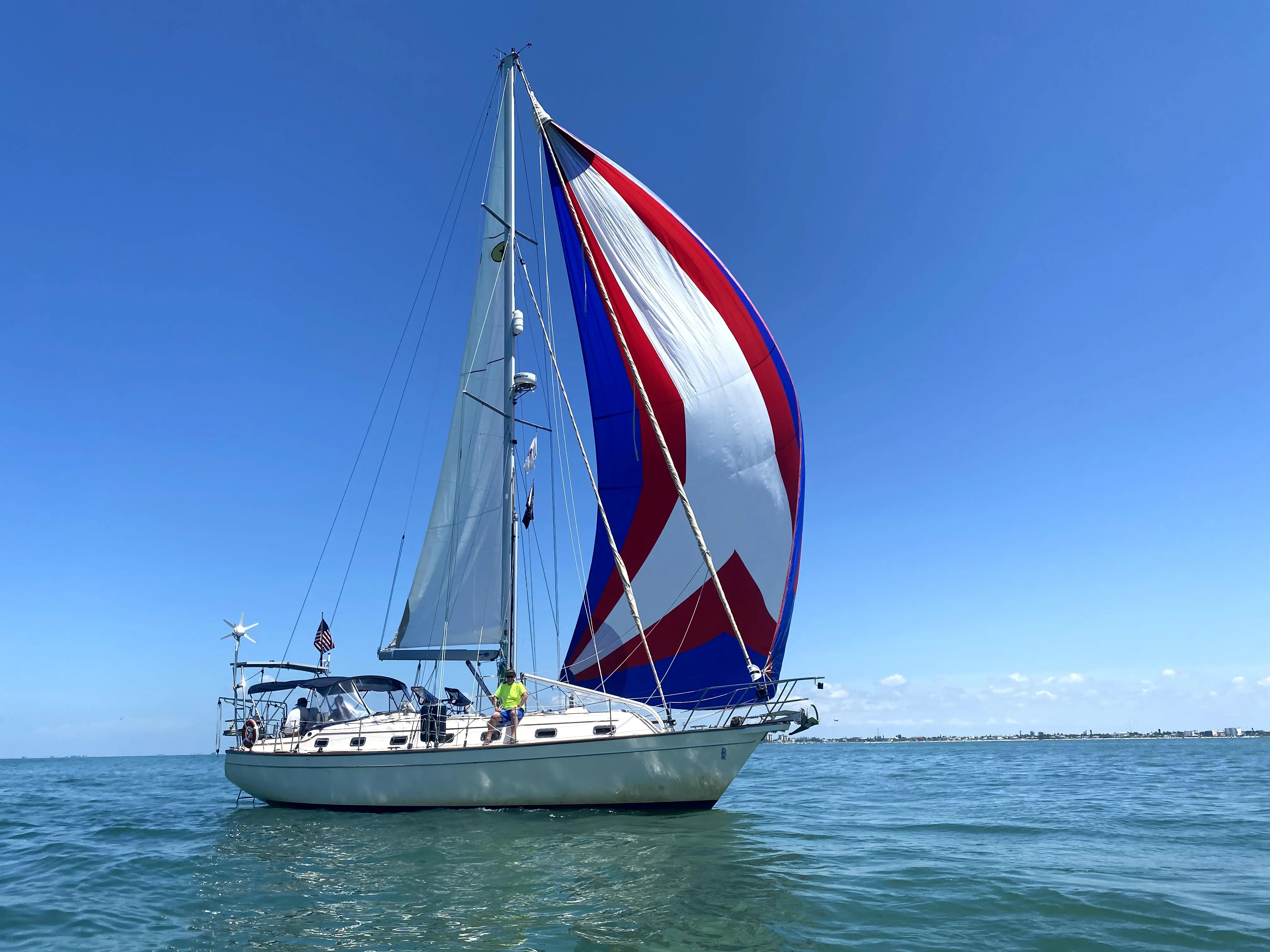 Patriot has recently undergone a major refit at the well known Island Packet repair facility Mack Yacht Services in Stuart, Fl. Repairs, Maintenance and upgrades including the following items NEW: standing rigging, windlass motor, 100' of anchor chain and rhode, bow thruster motor and control, Odyssey extreme agm battery bank, refrigerator and freezer compressors with evaporator plates, VTE 4000 watt generator, SeaSafe anchor rollers, Mack Sails Staysail, Solar Panels with VE smart controllers, prop shaft and cutlass bearing, MYS rudder, bimini dodger combo, life lines, Duraweld holding tank with blue seas level gauge, bilge pump 3700 GPH, exhaust hose, Harken MK4 furlers for genoa and staysail, holding tank macerator and water pumps, main engine starter & Sea Hawk bottom paint also done in 2024. Patriot's inventory includes a hard bottom dingy with outboard motor and loads of spares for cruising. After some hurricane damage, Patriot also received gel coat, teak and fiberglass repairs at MYS and is ready for her next adventure.