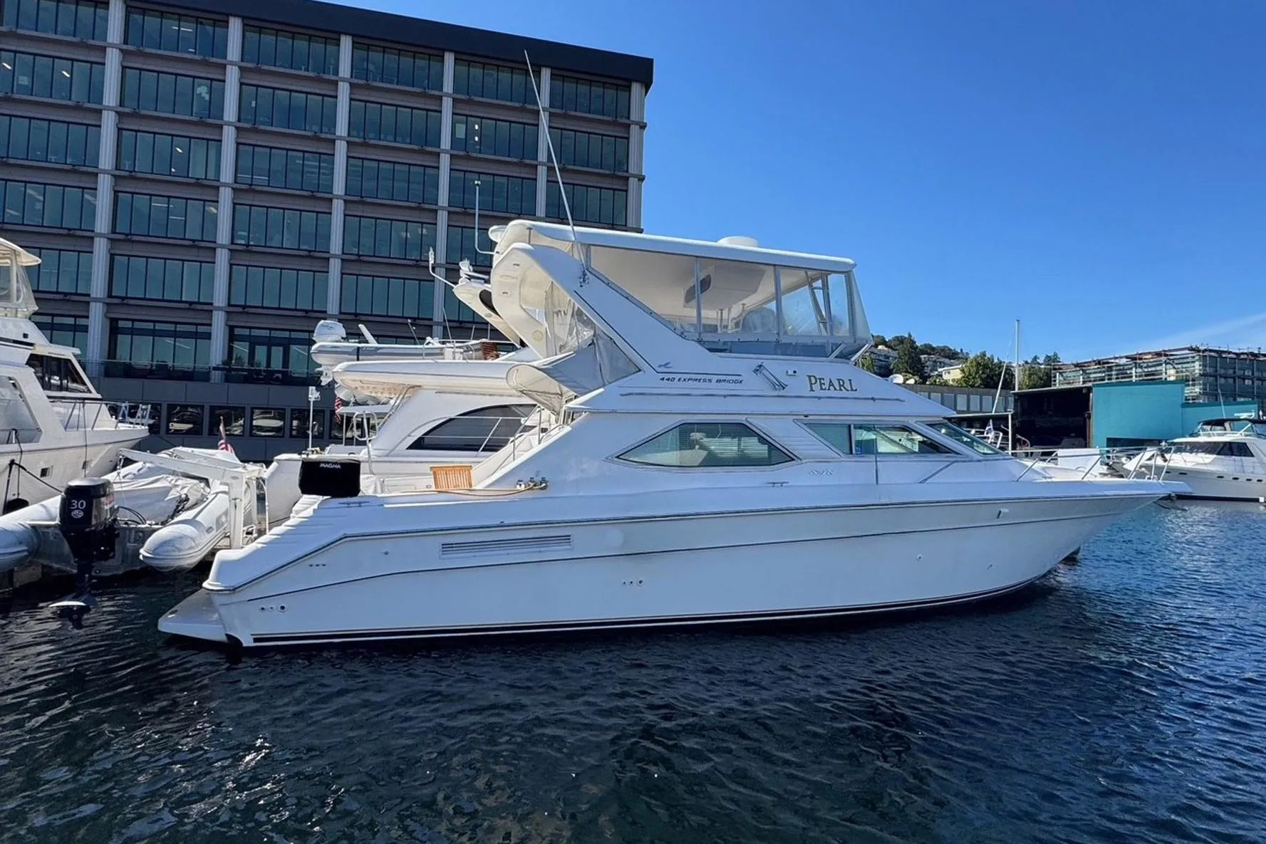 This well-maintained Sea Ray 440 Express Bridge is seriously for sale.