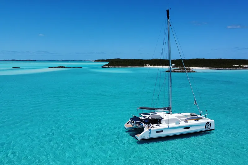 PEEMS est un Outremer 45 – allongé à 48 pieds dès sa construction, très récent, construit en 2022, version propriétaire (3 cabines), totalement éprouvé, dans un état proche du neuf avec peu de miles navigués.