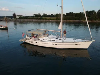 This Beneteau 423 two cabin, two head version, has been carefully maintained, made obvious by the exterior gel coat shine and the interior woodwork and varnish. Highlights include bowthruster, in-mast mainsail furling. 55 hp Volvo diesel and recent new canvas.