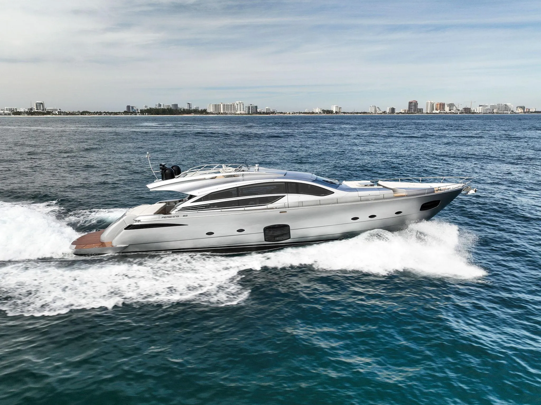 The breath-taking Pershing 82 VHP is capable of breaking the 50-knot barrier and it has an astonishing cruising speed of 45 knots. This is all thanks to the new combination of twin MTU 16V 2000 M96L engines that generate 2,638 mhp at 2,450 rpm, together with Top System 95S surface propellers.