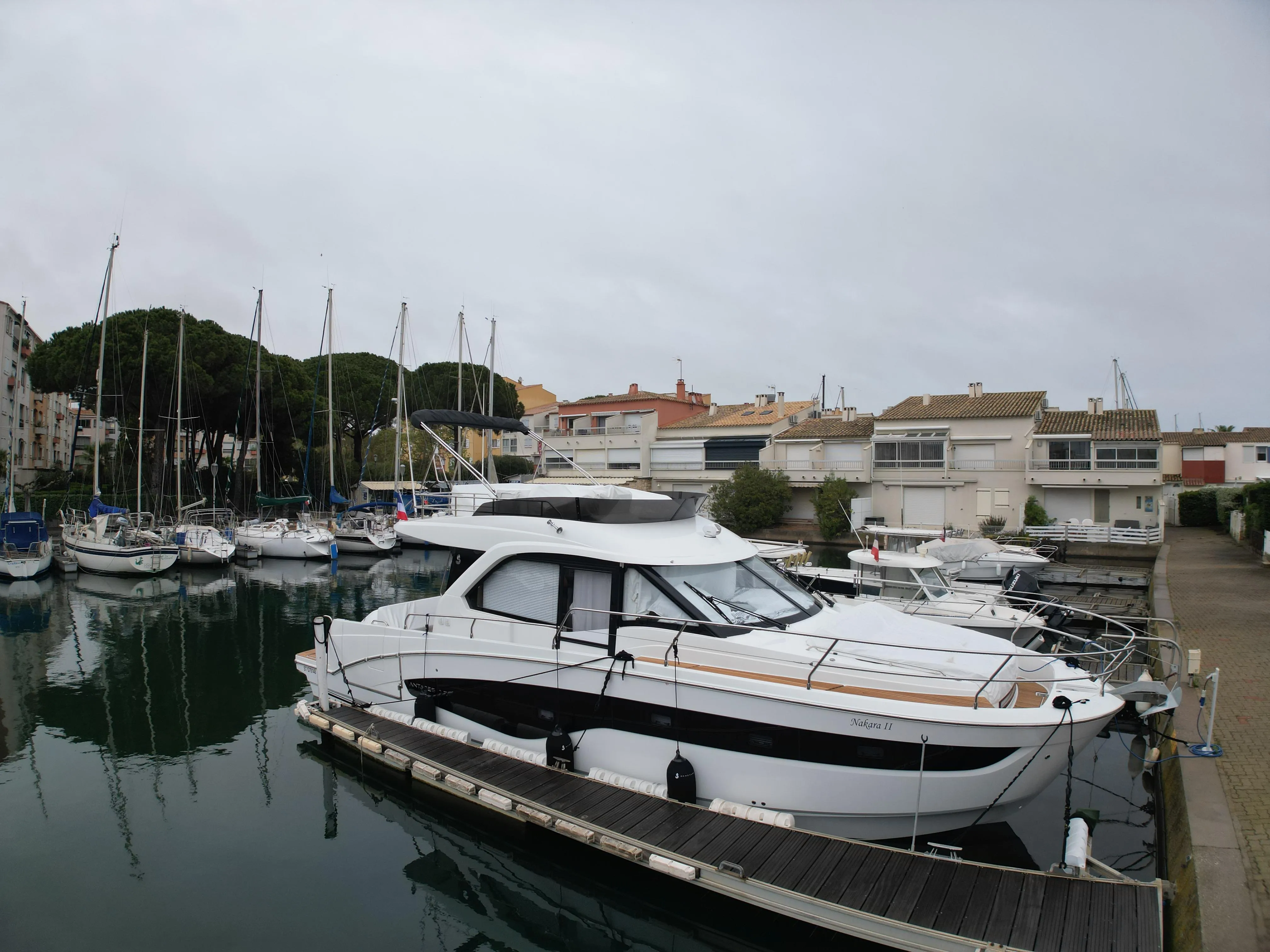 L'Antares 12 présente une silhouette moderne et élégante, pensée pour maximiser l'espace tout en garantissant une maniabilité parfaite en mer. Son cockpit spacieux est l'endroit idéal pour se détendre, profiter du soleil ou organiser des repas conviviaux. Avec un grand salon extérieur, une cabine avant généreuse et un accès direct à la mer, ce bateau offre un confort incomparable. L’intérieur est un véritable havre de paix, avec des matériaux haut de gamme et des finitions soignées. L'Antares 12 a été conçu pour que chaque moment à bord soit synonyme de relaxation et de luxe.