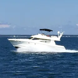 Engine access is available through a hatch in the salon sole or via the lazarette, making maintenance straightforward. Powered by twin Cummins QSC 500hp diesels, she cruises comfortably at 24–25 knots and tops out around 30. With her smart layout, elegant finishes, and reliable performance, this Prestige 46 is ready for her next adventure.