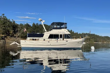 This well maintained 1987 DeFever 40 is a classic trawler designed for efficient long-range cruising thanks to twin Diesel Perkins and a full keel for stability.