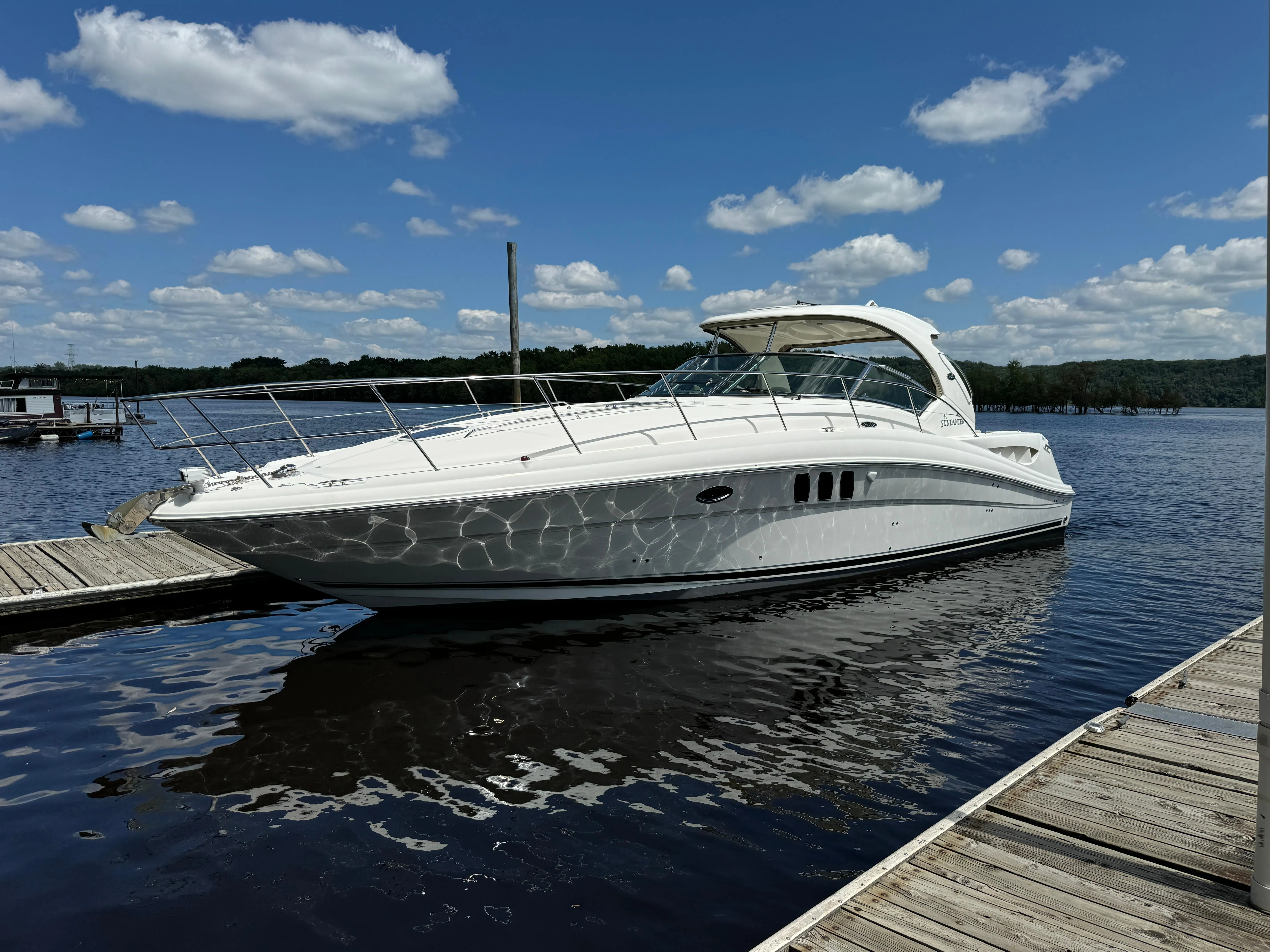 With its sweeping deck lines and dramatic profile, this elegant 40 Sundancer is sure to get noticed. This member of the Sundancer family features a sleek, wood-trimmed helm with custom-designed instruments, plus an optional fiberglass hardtop. Engineered to outpace every other boat in its class, the 40 Sundancer offers a spectacular combination of style, power and grace.