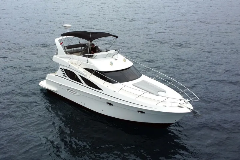 Powered for reliable cruising and equipped with a bow thruster, PURA VIDA makes docking and close-quarters maneuvering simple and stress-free. Her handling is smooth and responsive, providing a confident and comfortable ride. From the elevated bridge, you’ll enjoy excellent visibility and an open-air helm that enhances the overall cruising experience. Once up on plane, she runs quietly and efficiently, reflecting Silverton’s attention to hull design and engineering.