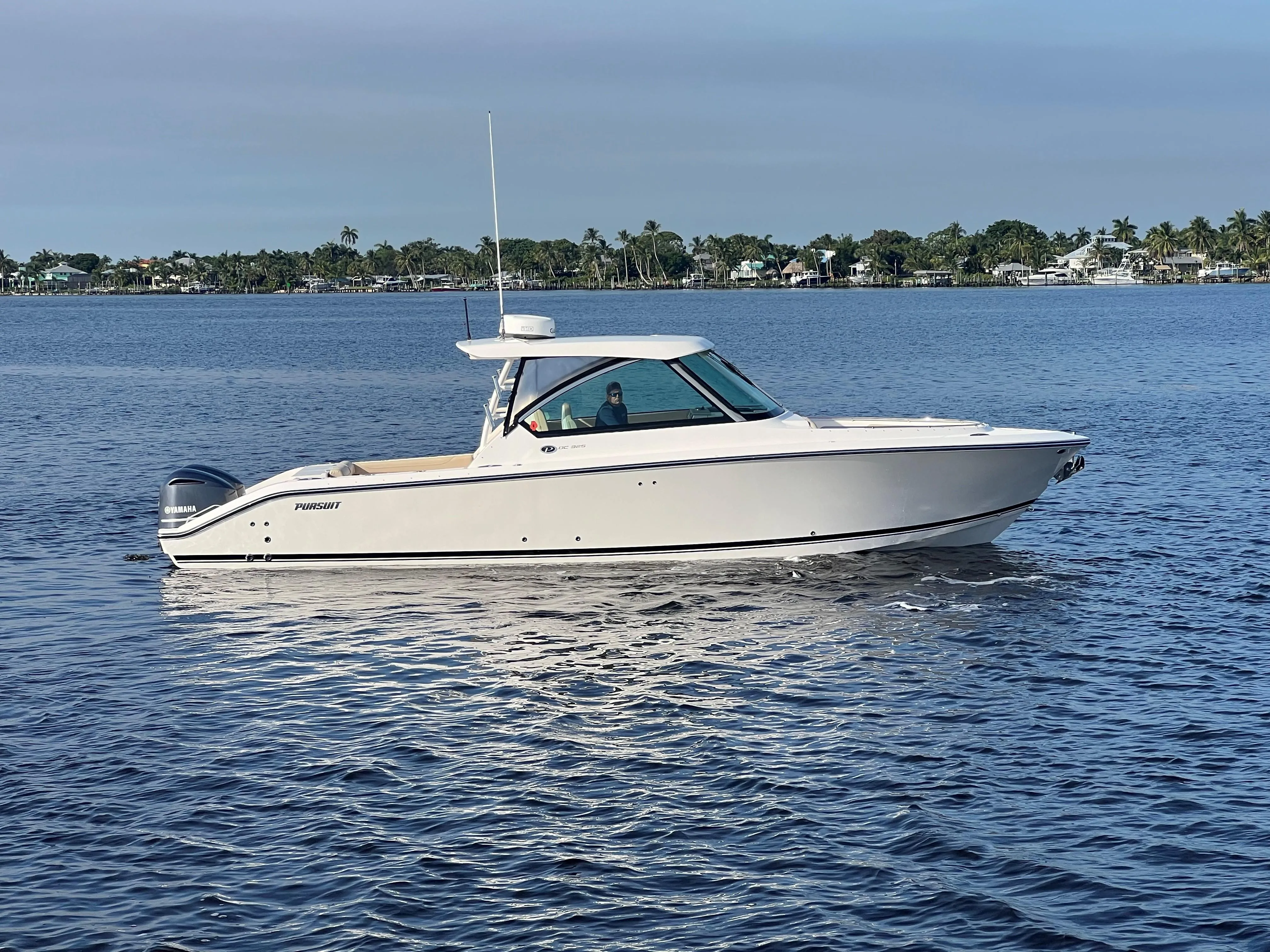 This 2015 PURSUIT 325DC features great options with twin 300hp Yamaha engines with only 350hrs. The boat has been lift kept with no bottom paint and is in great condition. The PURSUIT 325 DUAL CONSOLE has dual Garmin touchscreen electronics with Garmin radar, joystick control, bow thruster, auto pilot, electronic cockpit shade, grill, and many great other options. To inquire or set up a showing on this 2015 PURSUIT 325 DC call the listing broker.
