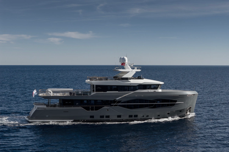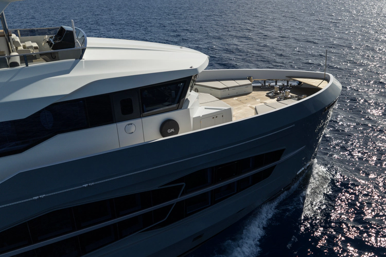 Her bold lines are highlighted by a plumb bow painted in a striking ghost gray, forward raked windows, and large glass windows. Equally stunning as she is capable, QM has a 4,000nm range & can carry a best-in-class number of tenders & toys on deck thanks to her 3 ton davit on the boat deck.