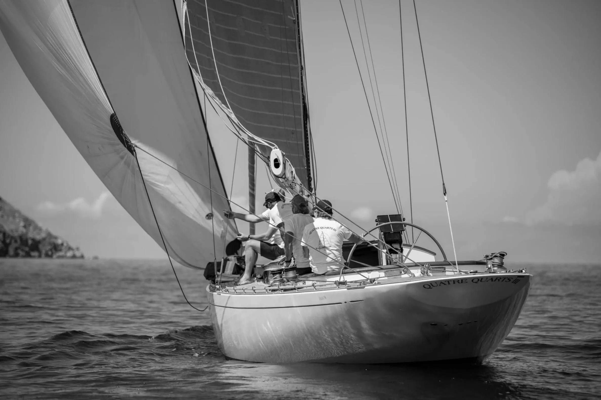 Quatre Quarts Trois has cruised in the west Med and raced for fun in St Tropez and other local races. She is a beautiful yacht at the dock and at sea.