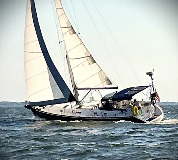 Presented here is the Beneteau 411 Ltd. with the special package for 2002 - including Navy blue hull and gold trim, larger 56hp Yanmar 4JH3E engine, 2500W power inverter, teak rail mount OB bracket, and fold down stern pulpit cockpit seats.