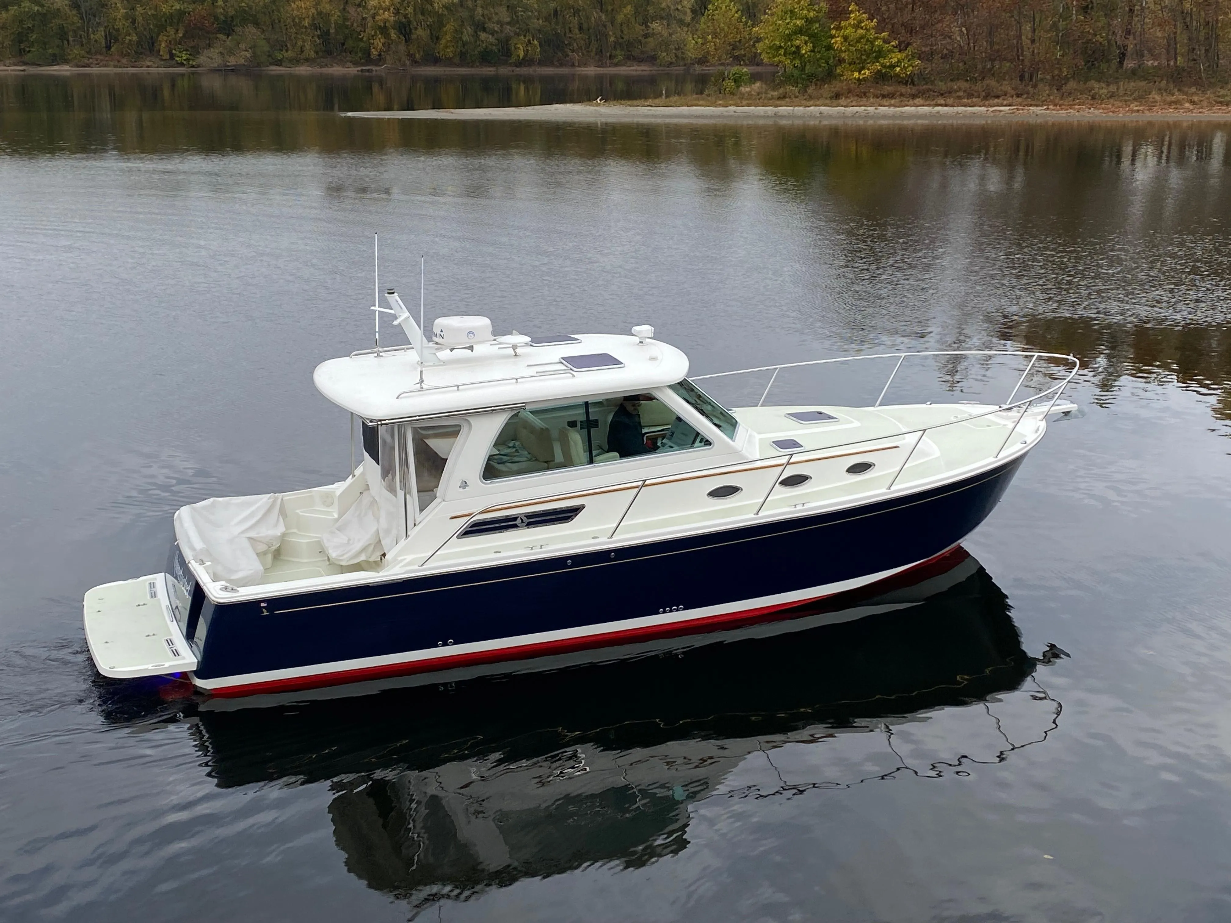 This 34’ Back Cove is equipped with Cummins QSB6.7, 480 HP diesel inboard with 475 hours. She was repainted Flag Blue in 2021 with Awlcraft 2000 (no fade). This Back Cove is loaded with numerous factory options including: