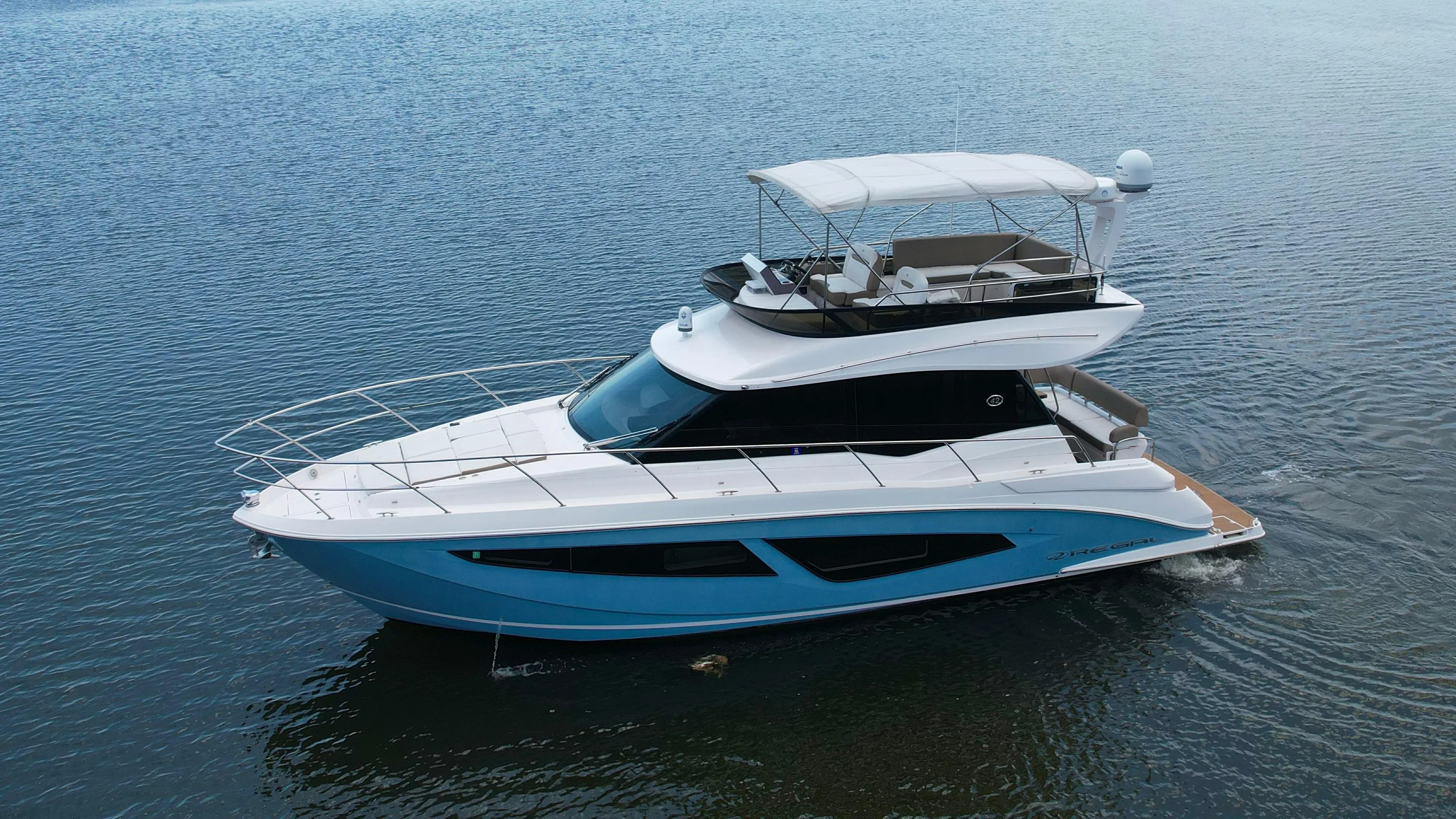 Price drop $60,000! Equipped with Seakeeper - it's a game changer for comfort and stability. This Regal 42 has been well maintained, updated, lift kept and a reliable boat for this second owner for the last 5 years. Designed for extended cruising, she features an impressive array of navigation equipment, generous storage throughout, and a rare second galley below, perfect for long trips with added refrigeration and meal prep space. This boat is highly fuel efficient (see performance report in photos) - Underway you will cruise at 25 knots (29 mph) and WOT 30 knots (34 mph).