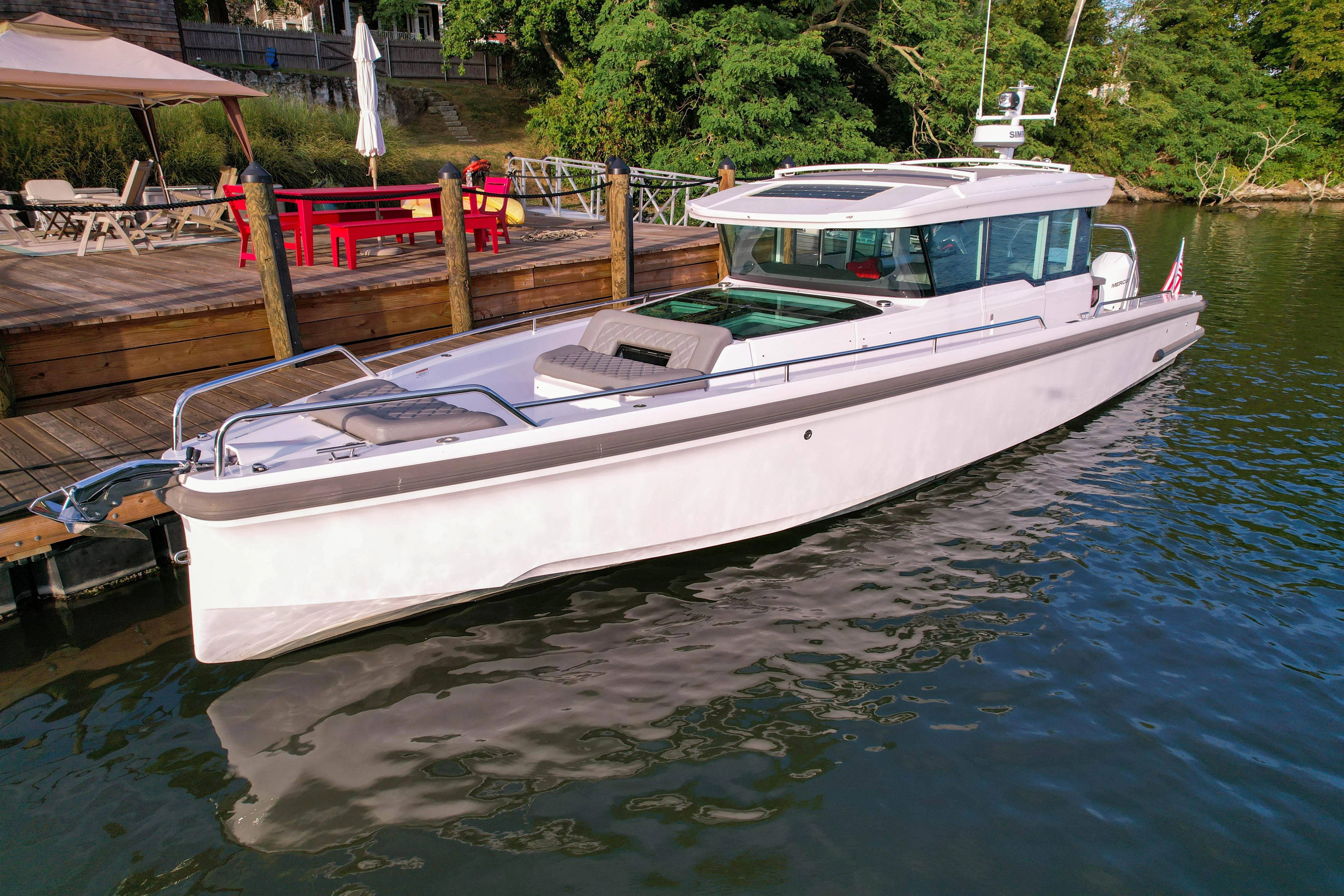 "The ultimate cross-over between open and enclosed boating, that challenges convention in both looks and onboard functionality. This model combines the functionality, ease of movement, social outdoor and indoor spaces and versatility of outboard walkaround centre-consoles with a spacious, fully enclosed weather proofed cabin. The 37 XC opens a world of possibilities for safe, extended voyages in comfort even in unpredictable weather." - AXOPAR WEBSITE