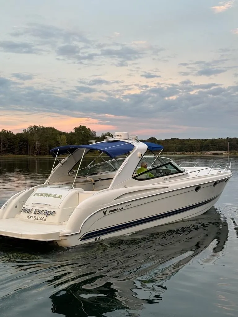 The FORMULA  400 SUPER SPORT is an American built entry into the high performance luxury sportboat market dominated by a handful of pricy Euro-Imports. Long and narrow the 400 SS is built ion FORMULA'S "FAS3TECH" hull bottom- a doublle stepped deep V Designed to reduce the water's grip on the hull. This makes it a faster and more stable vessel that runs a near optimal running angles with out the need to constantly trim the out drives.