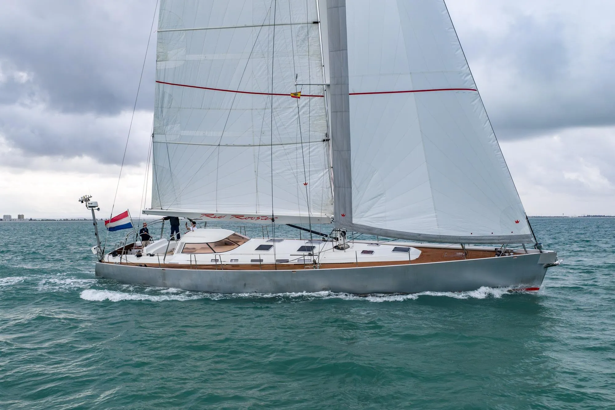 Sail inventory is up to date with a Elvström mainsail (2023) and a Elvström genoa (2024). Fully equipped for self-sufficient offshore cruising with a Perkins Sabre engine, generator, hydrogenerator, watermaker and comprehensive navigation systems. She is equipped with a central pneumatic system, widely used in commercial and offshore vessels for its reliability, redundancy and low fire risk. An airbag release system further enhances safety for offshore sailing. Red Rooster is an exceptional long-range sailing yacht for discerning sailors. Offered in co-operation with KM Yachtbuilders.