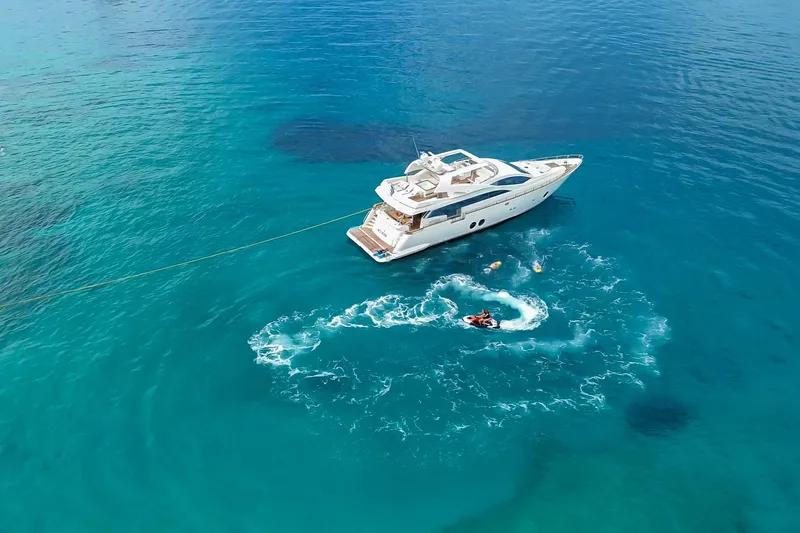 Introducing the magnificent Aicon 85, a stunning motor yacht from 2010 that embodies luxury and performance. With an impressive overall length of 27 meters, this vessel is designed for both comfort and adventure on the water. The deep Vee hull, crafted from durable fiberglass, ensures a smooth and stable ride, perfect for cruising at a speed of 26 km/h, with a maximum hull speed of 30 km/h. Powered by twin CAT C32 inboard engines, each delivering an impressive 1360.9 kW, the Aicon 85 boasts a reliable and robust performance, having logged just 980 hours. Accommodating up to six cabins and eight heads, this yacht provides ample space for relaxation and entertainment. The thoughtful features and elegant design make the RED ROSE an exceptional choice for those seeking a blend of sophistication and adventure on the open seas.