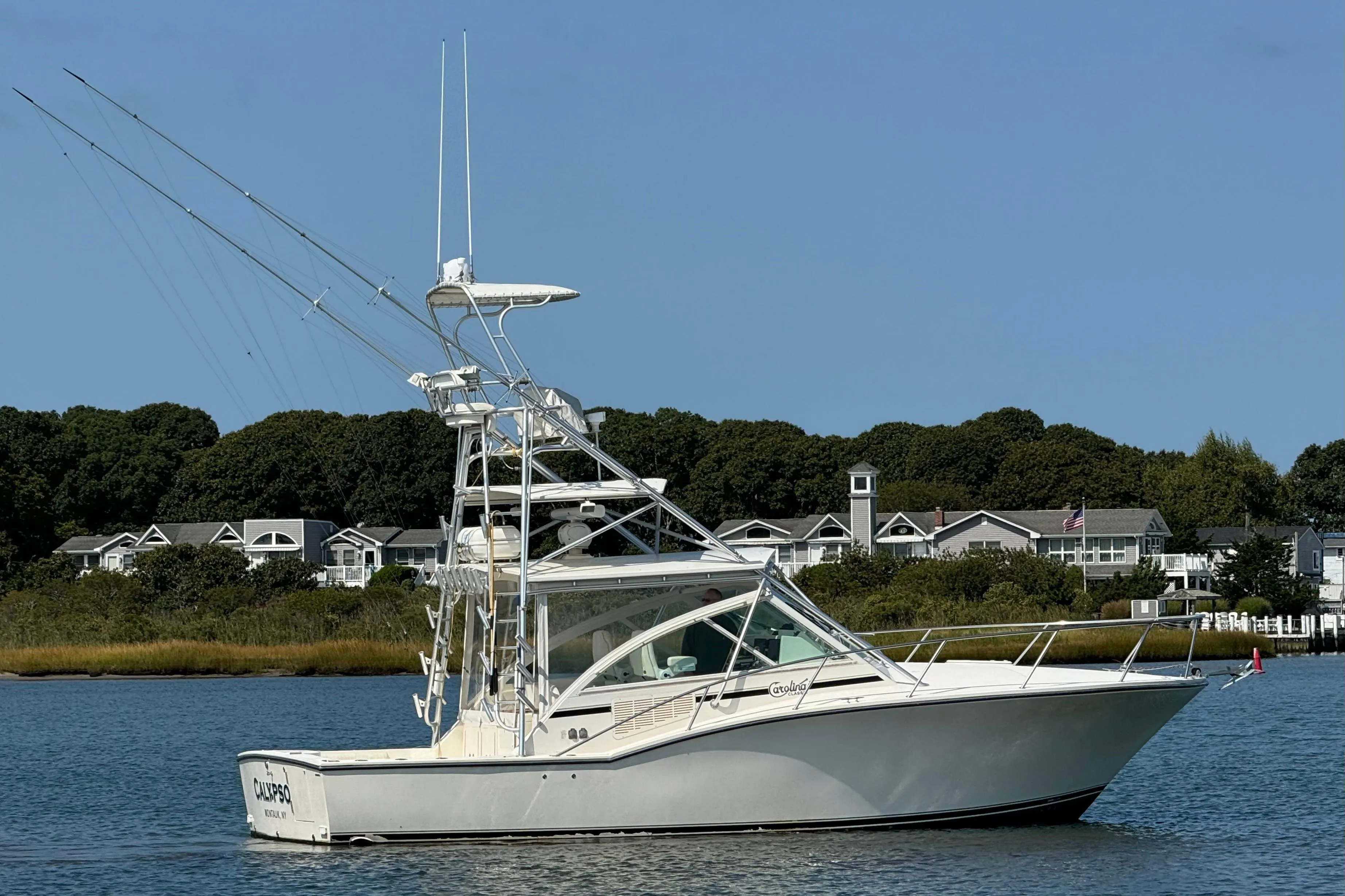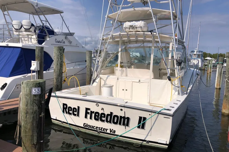 Introducing "Reel Freedom" She's a proven design, heavy construction, quality craftsmanship, and attention to detail is all integrated in the Carolina Classic 35. The result brings you predictable reliability, performance and value for the dollar with speeds in excess of 32 knots. The huge Cockpit is uncluttered. The spacious helm deck L-Shaped lounge has plenty of comfortable seating for guests. Below you will find convenience and comfort in the air conditioned cabin featuring 6ft 4in headroom, a fully appointed Galley, Entertainment Center and electric Head and shower. In short, all the features you would find in a larger boat- except the big cost.