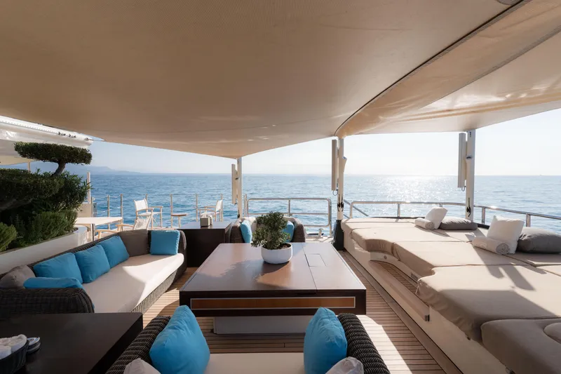 She offers world class amenities, including a live garden, an Oasis style deck with fold down balconies, bow lounge, and interior volume far exceeding the expectations of a modern yacht offering the same level of features.