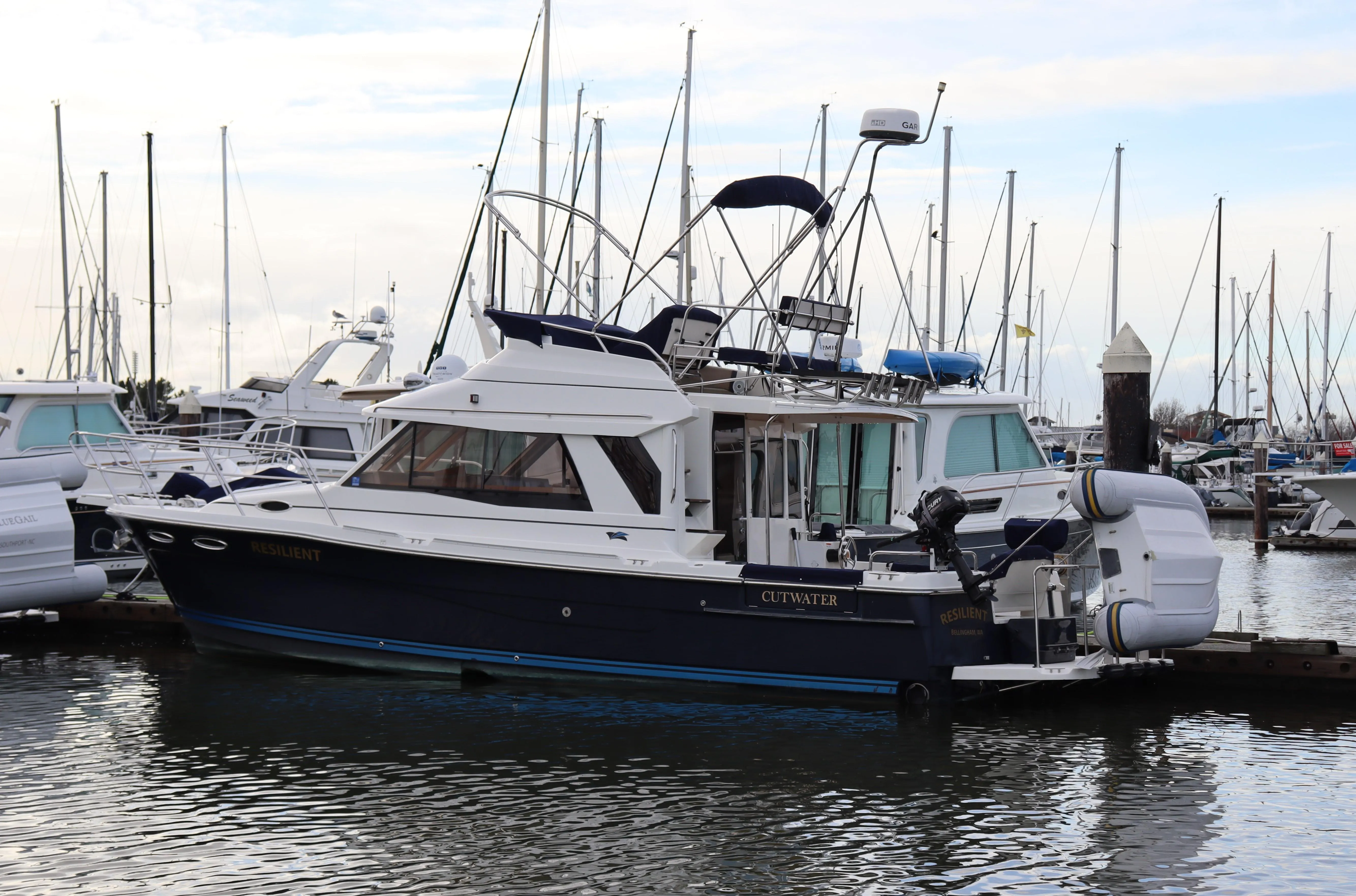 "Resilient" represents a great value on a lightly used Cutwater 30 CB and has a long list of standard equipment. In addition, the owner has added our most popular options making this a turn-key cruising boat.