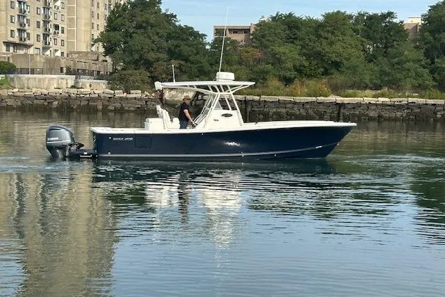 RESOLUTE, is a great example of a well equipped 31 Regulator FS, featuring the Flag Blue Hull, full Garmin Package, Powder Coat Package, Cockpit Engine Flush, Sun Bed Table, New Forward Cushions, and more.