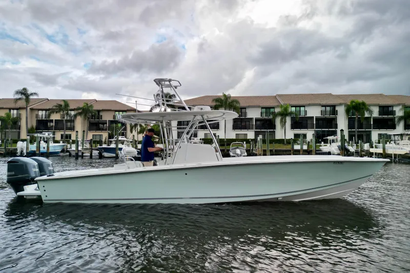 Introducing the 2005 Jupiter 31 Center Console, a remarkable vessel designed for both performance and comfort. This 31-foot beauty boasts a robust fiberglass hull, ensuring durability and stability on the water. Equipped with twin Yamaha F300 outboard engines, each delivering an impressive 300 horsepower, it offers exhilarating cruising speeds of up to 30 knots and a maximum hull speed of 55 knots, perfect for adventurous outings. The boat features a well-appointed head, the boat also has a newer Birdsall hart top and leaning post, enhancing convenience during your excursions. With 740 hours of use, the engines are reliable and ready for your next journey. The thoughtful design includes essential equipment, ensuring a seamless experience on the water. Whether you're fishing, cruising, or entertaining, the Jupiter 31 Center Console promises to deliver an exceptional boating experience, combining speed, comfort, and style in one impressive package.