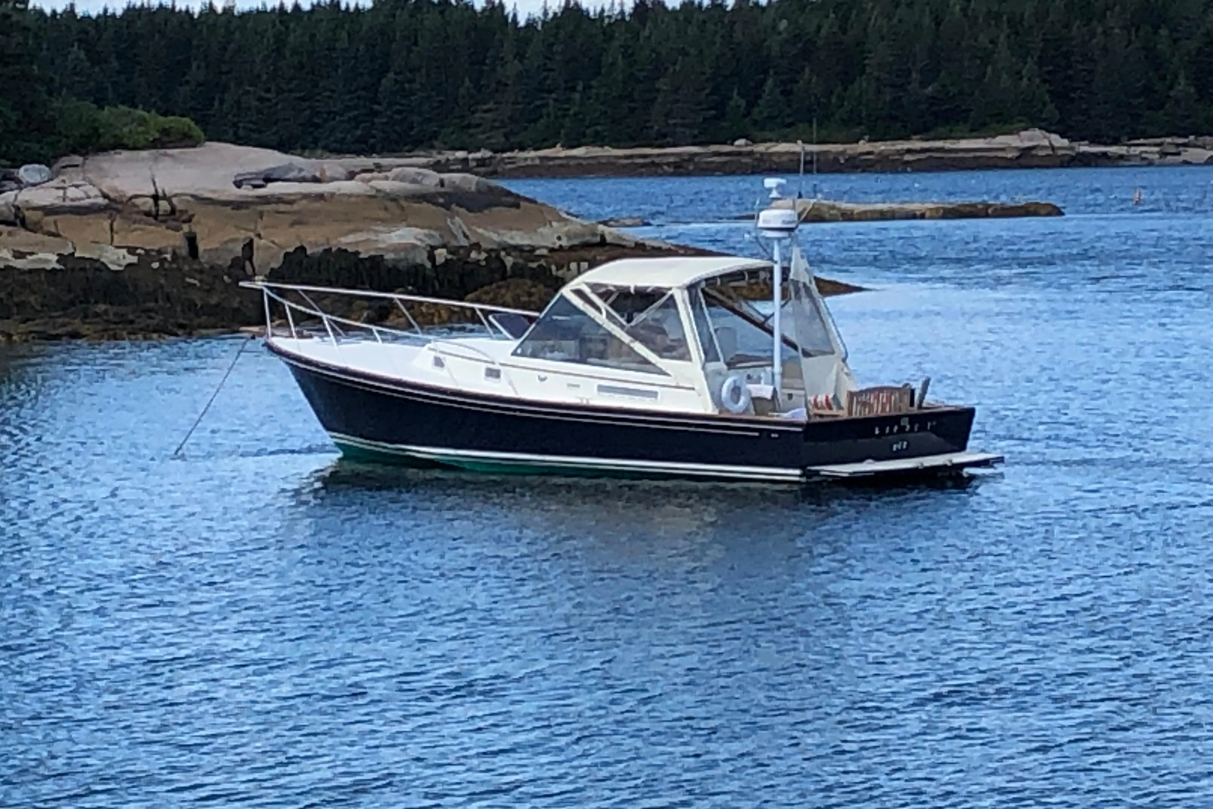 Ripple is a 1998 Little Harbor WhisperJet 36. Ted Hood combined elegance with performance with this design.. The vessel features a sleek composite hull designed in a deep vee shape, ensuring smooth navigation and stability on the water. Powered by twin Cummins 6BTA5.9 inboard engines, each delivering an impressive 370 horsepower, the WhisperJet 36 promises exhilarating speed and responsiveness, enhanced by its efficient jet drive system. Accommodations include a cozy cabin and a well-appointed head, making it perfect for weekend getaways or day trips. The boat is equipped with an electric windlass, adding convenience to your anchoring experience. Whether you're cruising along the coast or enjoying a day on the lake, the Little Harbor WhisperJet 36 offers a perfect blend of comfort, style, and performance, making it an exceptional choice for any boating enthusiast.