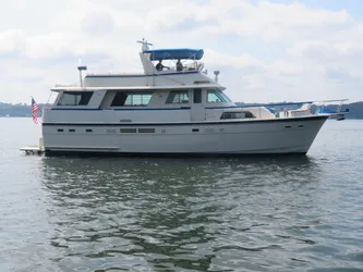 This is a mostly Freshwater Wide Beam 1986 58 Hatteras. Don't let the age fool you as this is a very nice boat and is in excellent condition for its age. Back in around 2012 this boat had over 250,000 spent updating this beautiful Hatteras. This boat was freshwater only undercover until owner spent about two years traveling Florida, Bahamas and East Coast. It is moored in covered slip in Chattanooga TN. Boat has Detroit 8V92T1with around 3300 hours, Forward is a V Berth with Bunk Beds, Center stateroom with side by side beds & Master Stateroom with king bed, Boat has full walk around decks, teak varnished handrails with covers, has Garmin GPS 4212, Ampelos Depth Finder/Fish Finder 260, Ray Marine Smart pilot with Remote, Galley Maid windless with 300ft of Chain, Two large Deck boxes for storage, Folding Arch, Uniden VHF Radio, Engine Room Cameras, Bow Thruster, Naiad Stabilizer, Constellation Compass, Wet Bar Aft with Refrigerator, Aft table and chairs, TNT Lift Hydraulic Swim Platform, Aft Hardtop Dinghy Chocks with full directional 1500 Capacity electric Davit, Galley has Dinette, 19cu ft Refrigerator, GE Microwave, Oven Cook top combo, Dishwasher, Trash compactor, Two Norther Lights Generators 20kw and 9kw, All five Cruise Air units have digital controls, 3 Heads with separate showers, This is a most see Yacht that is ready to go cruising.