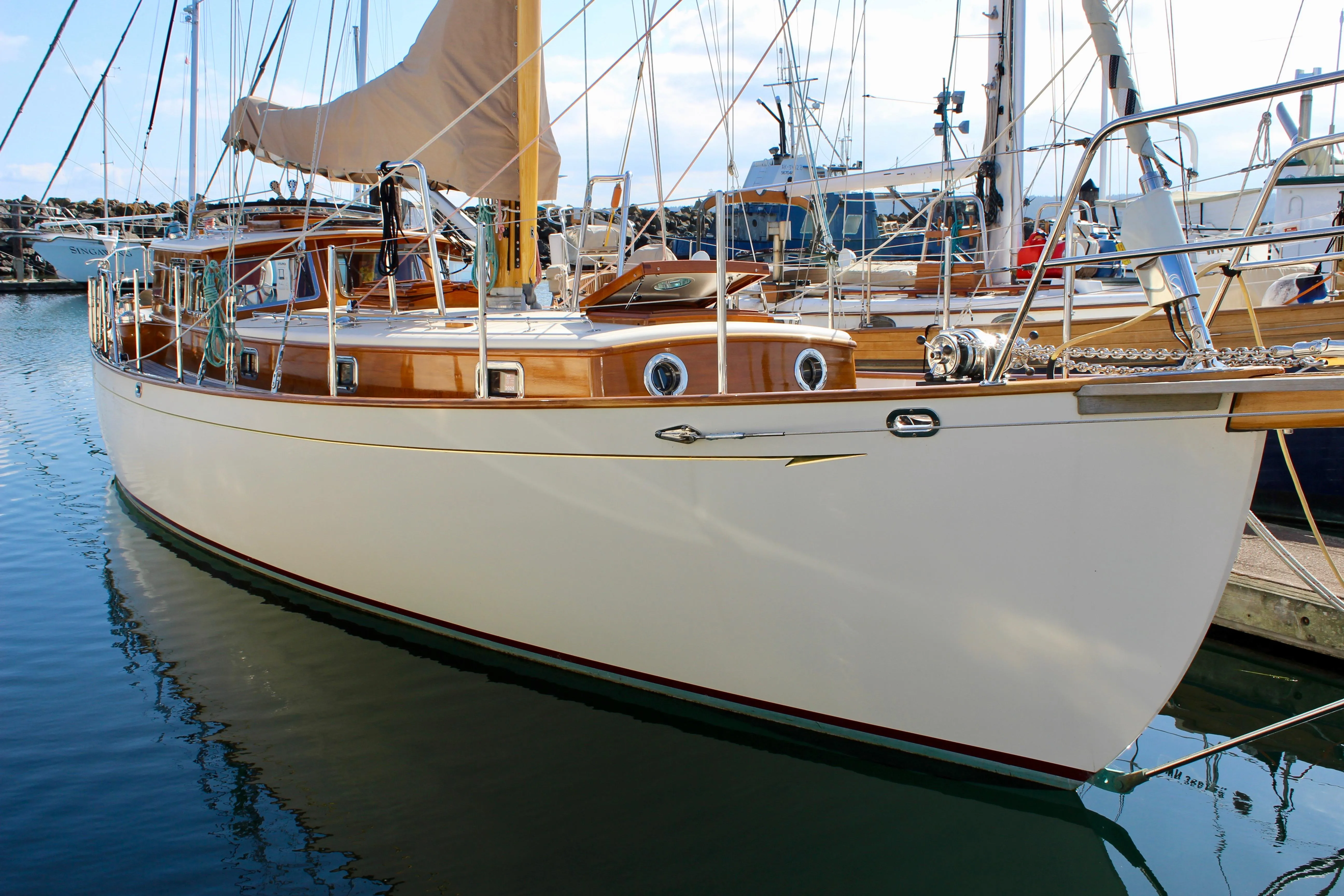 The current owner commissioned the boat with Cape George Marine Works and has also worked at length with Port Townsend Shipwrights Co-op, Port Townsend Rigging and many other Professional Marine Tradespeople in Port Townsend that all hold pride for this contemporary vessel.