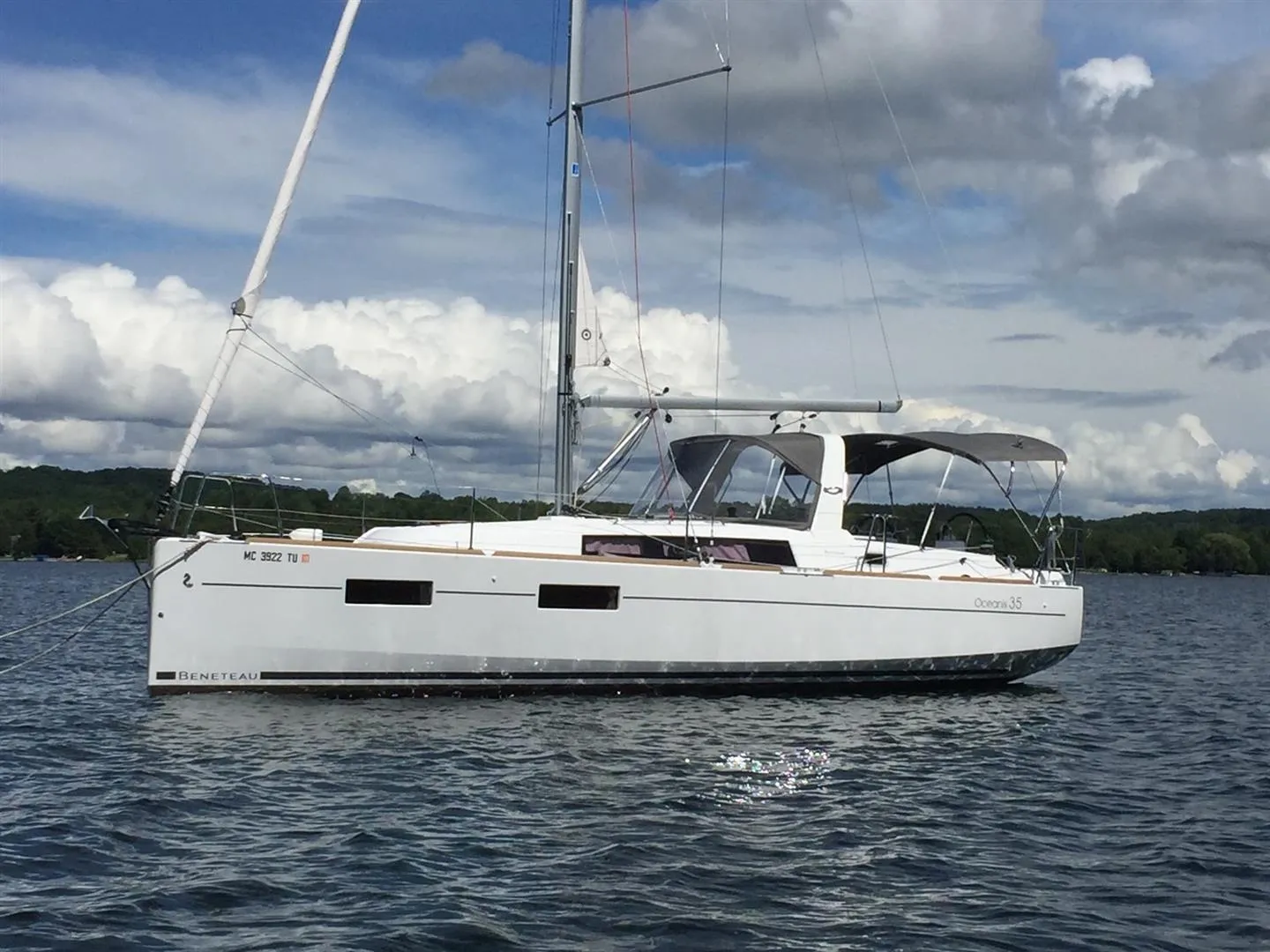 Rock Chalk is a single owner fresh water 2016 Oceanis 35 Cruiser with the two cabin layout and removable forward cabin bulkhead. This version is one of many offered for this model and also has a separate stall shower aft and to starboard. She has seen light use and only has 232 hours on her 30hp Yanmar diesel. With B&G electronics and also the galley package she is well equipped for two or a small family for summer cruising. Located now in heated storage, Rock Chalk is ready for your inspection.