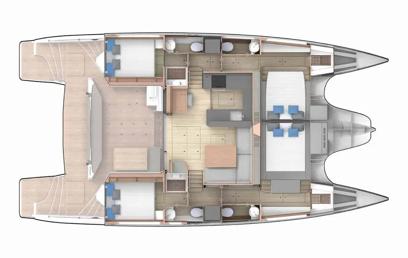 Privilege Catamarans has a long and well-deserved reputation for producing some of the finest luxury blue water sailing catamarans in the world - with a focus on exceptional build quality, refined finishes, and solid construction. Rogue was splashed at the yard in Les Sables-d’Olonne, France in the Spring of 2021.