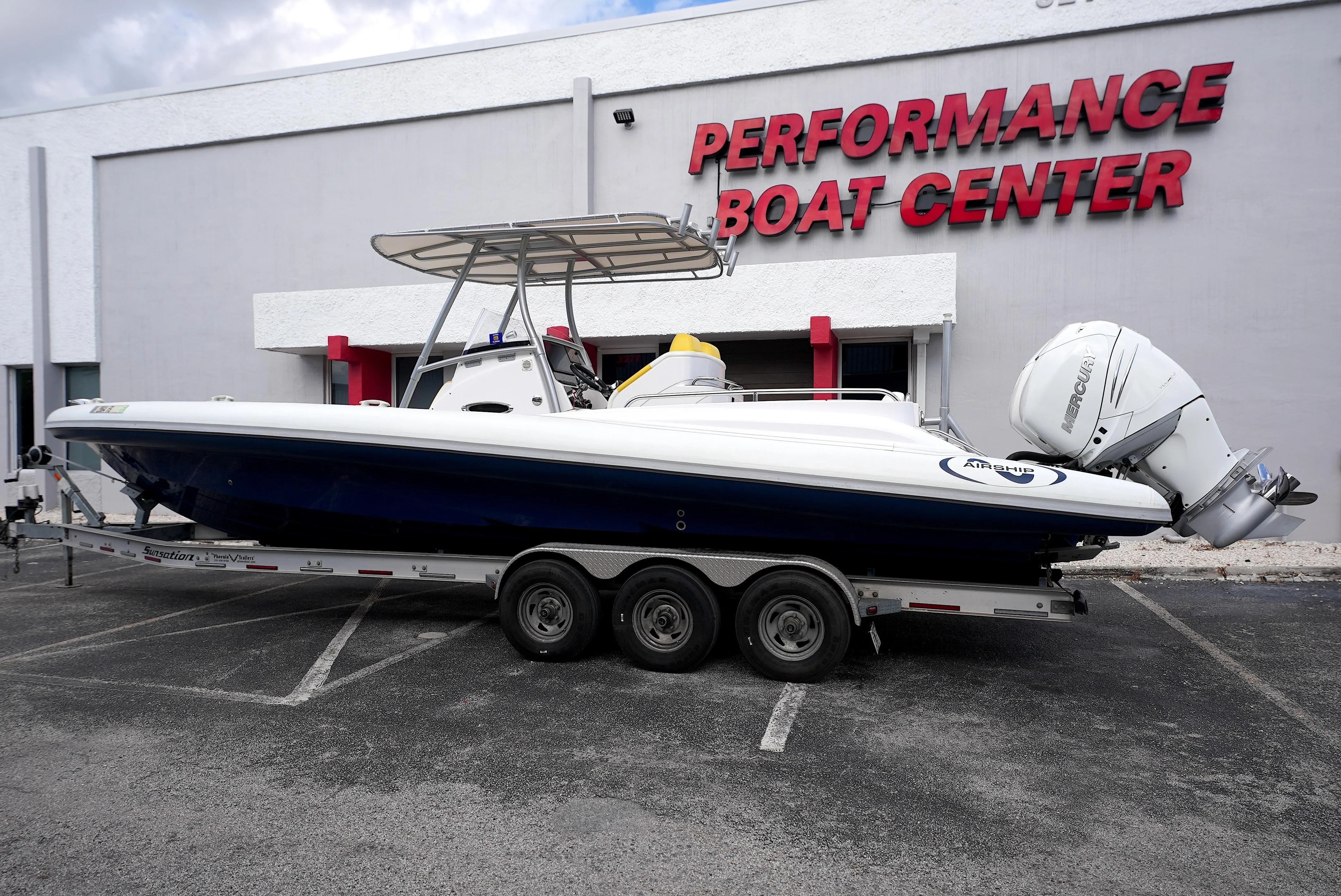 2017 Airship 33 with Twin Mercury Verdo 350s, 166 hours, Joystick docking, Ski Pylon, Recent Seadek, Garmin GPS, Fusion Stereo w JL Audio Speakers, T Top with Canvas Roof. Very Agile, and Fast. These Air Ships eat up the rough water! These Airships make great Yacht Tenders. Includes Phoenix Aluminum/Galvanized Trailer. Always stored indoors and maintained at PBC South Florida when not in use. Easy to see in our Ft.Lauderdale store adjacent to the FTL Airport. Financing and Transportation available.
