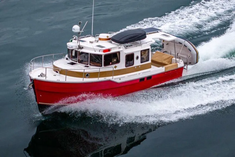 The Ranger Tug R-31-S features a two cabin interior, a complete galley, large dinette, owner head compartment with shower and fresh water flush toilet, a large cockpit with excellent seating, foredeck seat with a table, a Volvo D4 300hp diesel with only 280 hours, a 5KW generator, and much more.