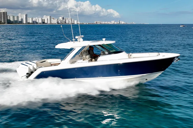 The Tiara 38 LS features a deep-V hull built with advanced composite construction for a solid, quiet ride. A sharp entry cuts through chop, while defined chines and spray rails enhance handling and keep the ride dry—delivering a confident blend of offshore capability and refined cruising comfort.