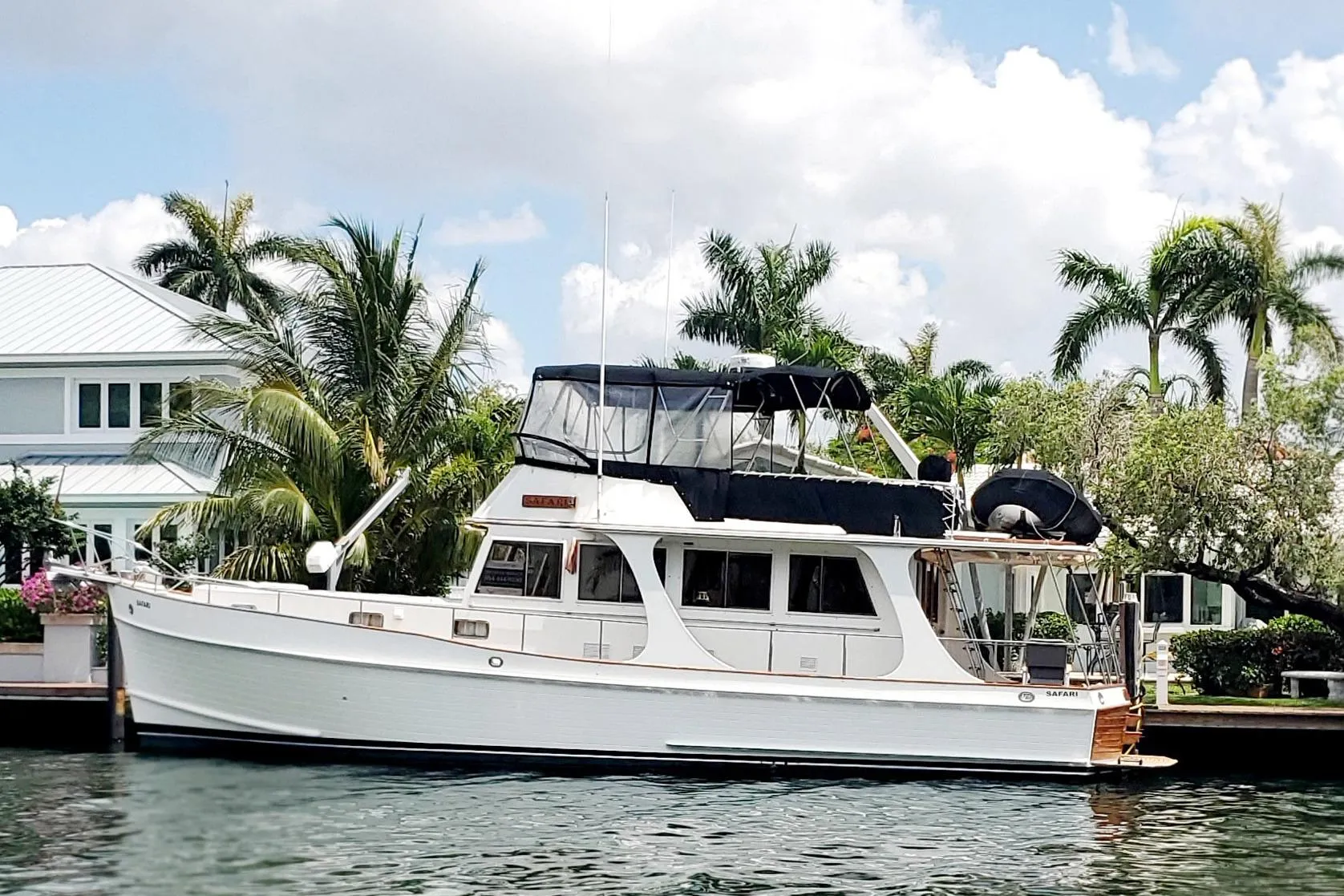 Introducing the stunning 1997 Grand Banks 46 Europa, a remarkable Troller that combines elegance with functionality. With an overall length of 46 feet, this semi-displacement fiberglass hull is designed for both comfort and performance. Powered by twin Caterpillar 3126E inboard engines, each delivering 420 horsepower, it offers a cruising speed of 9 knots and a maximum hull speed of 17 knots, ensuring smooth sailing on your adventures. The interior boasts two well-appointed cabins and two heads, providing ample space for relaxation and privacy. This vessel is equipped for extended journeys, with an impressive range of 1,000 miles, making it perfect for exploring distant shores. The thoughtful design includes features that enhance your boating experience, ensuring you enjoy every moment on the water. The Grand Banks 46 Europa, named "Safari," is ready to take you on unforgettable voyages with style and reliability. Duty Paid.