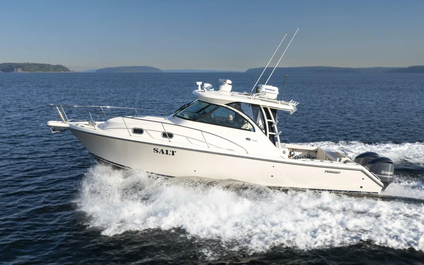 Salt is a highly customized and meticulously maintained Pursuit 345 Offshore, outfitted for both serious offshore fishing and luxurious coastal cruising. Powered by twin Yamaha 350 V8 outboards, this versatile vessel delivers reliable performance and a smooth ride, enhanced by SeaStar hydraulic power assist steering and Lenco trim tabs. A Fischer Panda 7.5kW diesel generator and CruisAir climate control ensure comfort and convenience at anchor or underway.