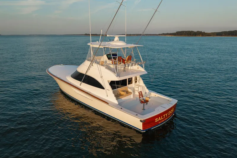 The 2023 54' Viking "Salty Dog" is a meticulously maintained vessel with light use, constructed by a multiple Viking owner. She features a versatile 3-stateroom, 2-head layout, including a crossover forward bunk arrangement in the VIP stateroom and elegant high-gloss walnut cabinetry. With her clean lines and Palm Beach look, "Salty Dog" is sure to turn heads wherever she goes.