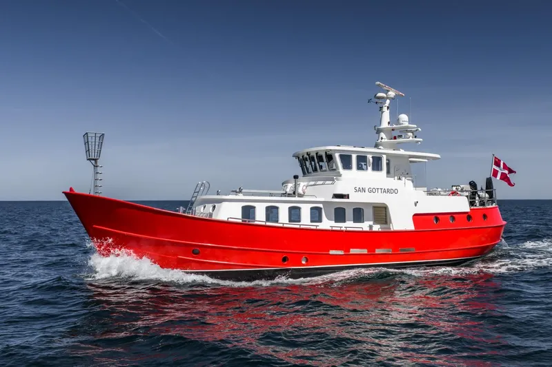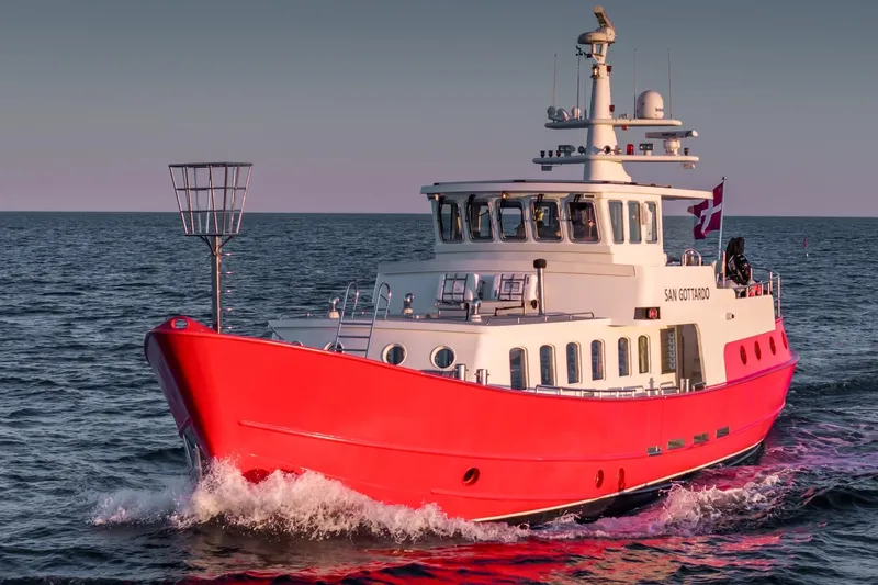 M/Y San Gottardo's Dutch heritage has been continued through her initial conversion to a yacht by Altena Yachting in 2009 and subsequent updating and upgrades by Jobi Shipyard in 2024. Her expedition capabilities have been verified as having been selected by the Swiss Arctic Project as the vessel of choice for onboard education on the climate changes in the Arctic Ocean, including having crossed the Barents Sea eight times.