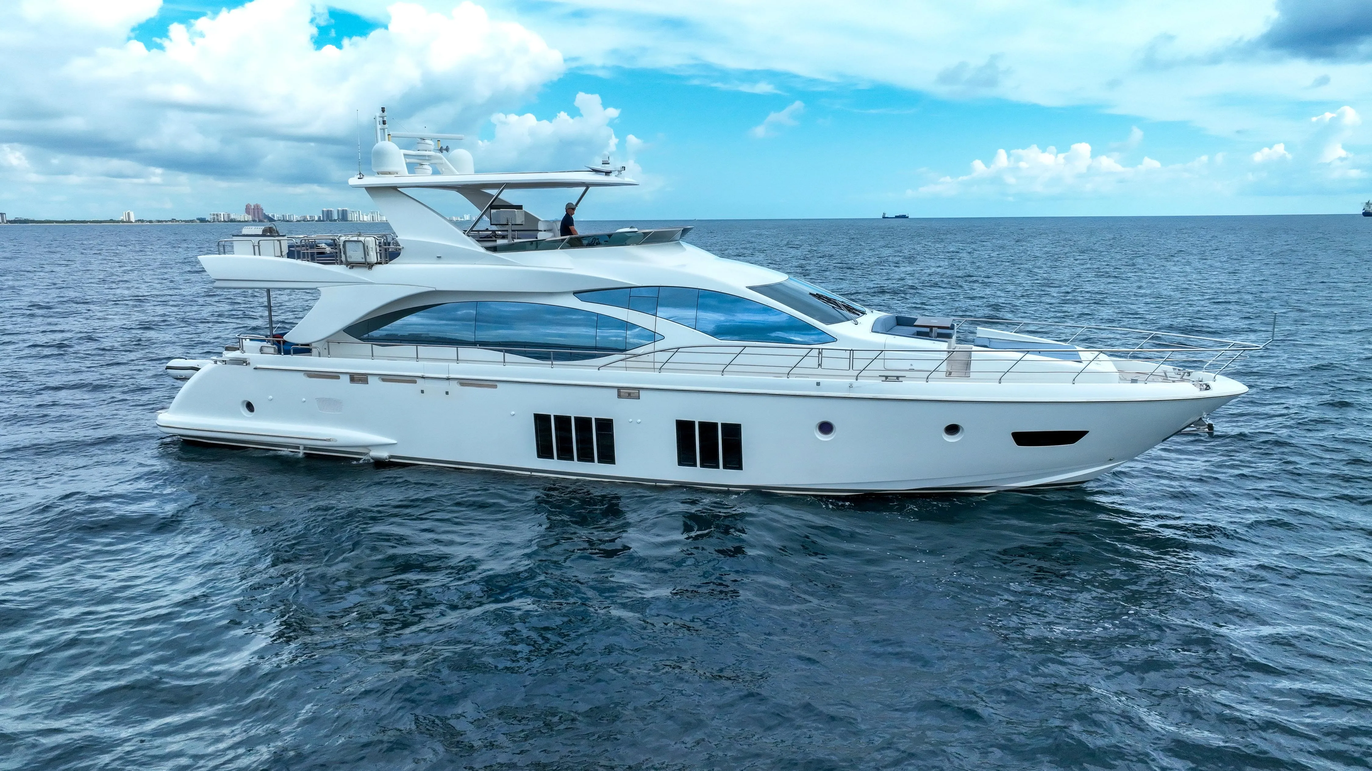 Satisfaction is a beautiful 2017 84’ Azimut Flybridge Motor Yacht.  Her pristine condition is sure to impress the most experienced of yachtsmen.  Satisfaction has 4 large staterooms and crew quarters aft for three (1 captain cabin and 1 crew cabin with bunks).  A unique feature of this 84’ Azimut is a separate entrance to the master stateroom ensuring the ultimate privacy for the owner while the guest staterooms forward utilize the spacious area in the forward part of the vessel.