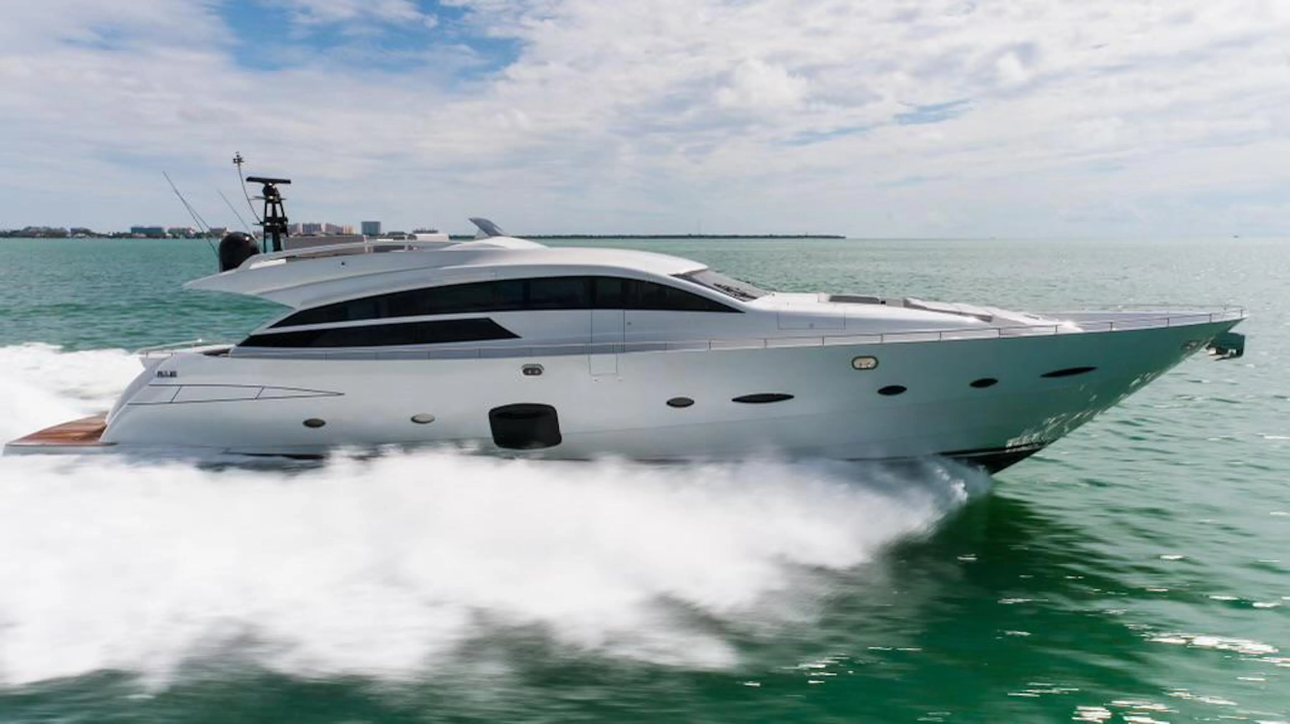 With its striking silver hull and aerodynamic lines, SCISSORTAIL boasts unparalleled performance, reaching advertised speeds up to 40 knots. A realistic, cruising speed of 36 knots is achievable. Whether cruising along the coastline or traveling to your favorite destination, this yacht offers an exhilarating and smooth ride, powered by twin MTU 16V2000 M94 engines.