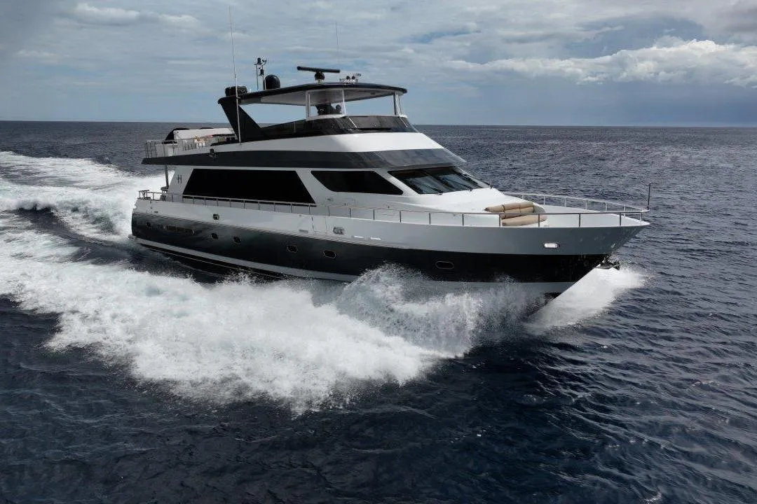 Each stateroom is fitted with a private en suite head complete with a full shower, while the master stateroom offers his and her heads. Perfect for both travel and entertainment, this yacht is designed to deliver comfort and style.