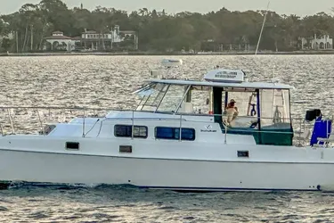 This Endeavour Trawler Cat is a 36' boat with a 15' beam. This gives a very large living space for entertaining friends and family, but unlike some wider catamarans, it fits into most marina slips.