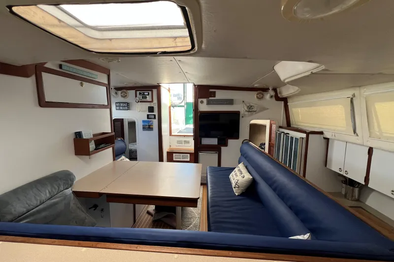 There are three queen-size staterooms and nice sized salon and cockpit areas. A full-size galley is in the port hull and open to the complete interior. A large head with separate shower is in the starboard hull next to the starboard guest stateroom. A 5kw Northern Lights generator replaced the original one and has low hours.