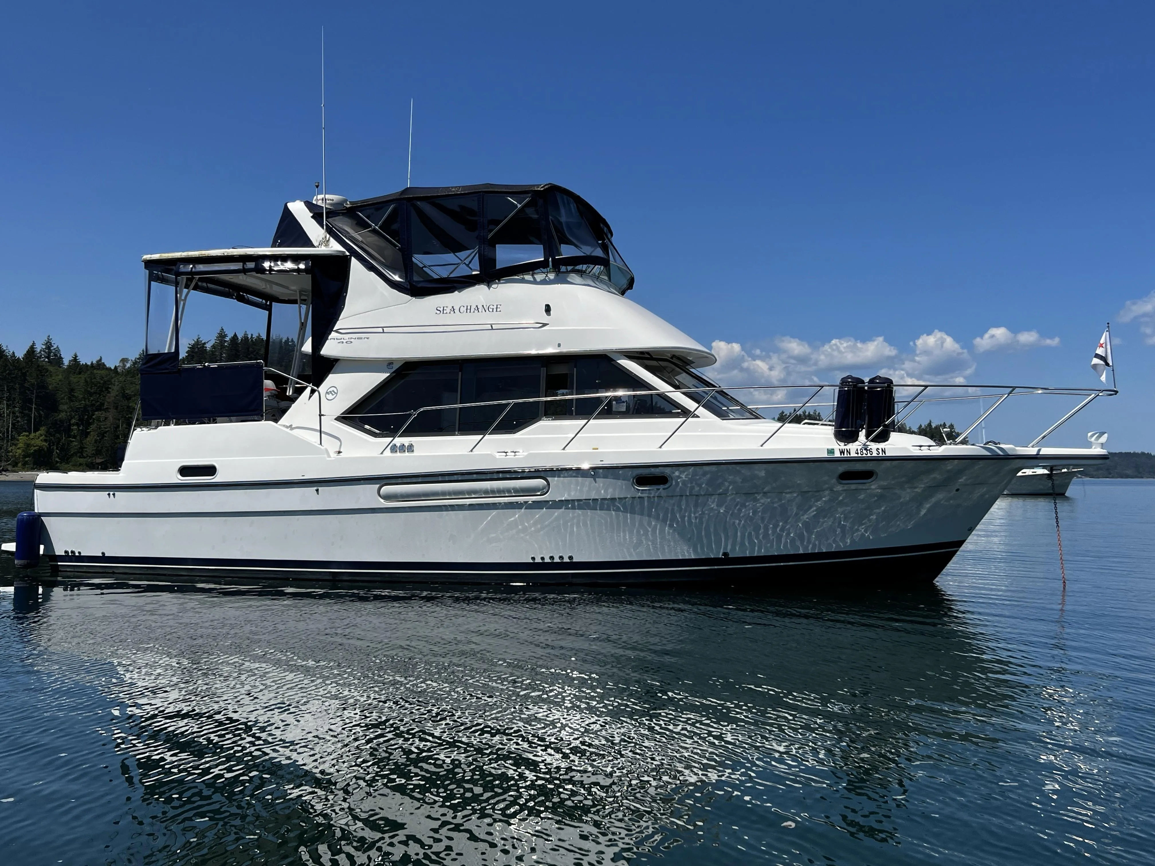 Step aboard Sea Change, a 2002 Bayliner 4087 Aft Cabin Motoryacht that blends luxury, performance, and practicality for the ultimate cruising experience. Designed for seasoned adventurers and weekend entertainers alike, this vessel offers expansive living spaces, modern upgrades, and a prime Gig Harbor moorage option—ready to make your boating dreams a reality.