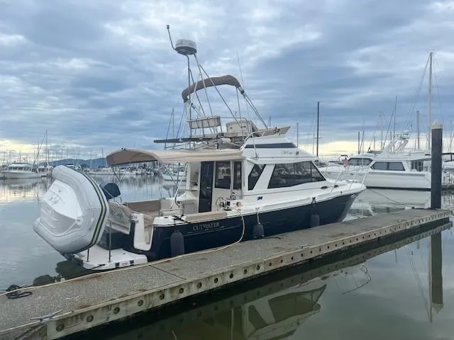 This clean 2015 Cutwater 30 Command Bridge has 606 hours on her Volvo D-6 435hp Diesel. The current owner has outfitted the boat for PNW Cruising. She is rigged with a RIB tender, weaver davits, Yamaha 2.5HP & a cockpit Bimini. This 2015 Cutwater Command Bridge also has a long list of standard equipment and is ready to explore the San Juan Islands this summer!
