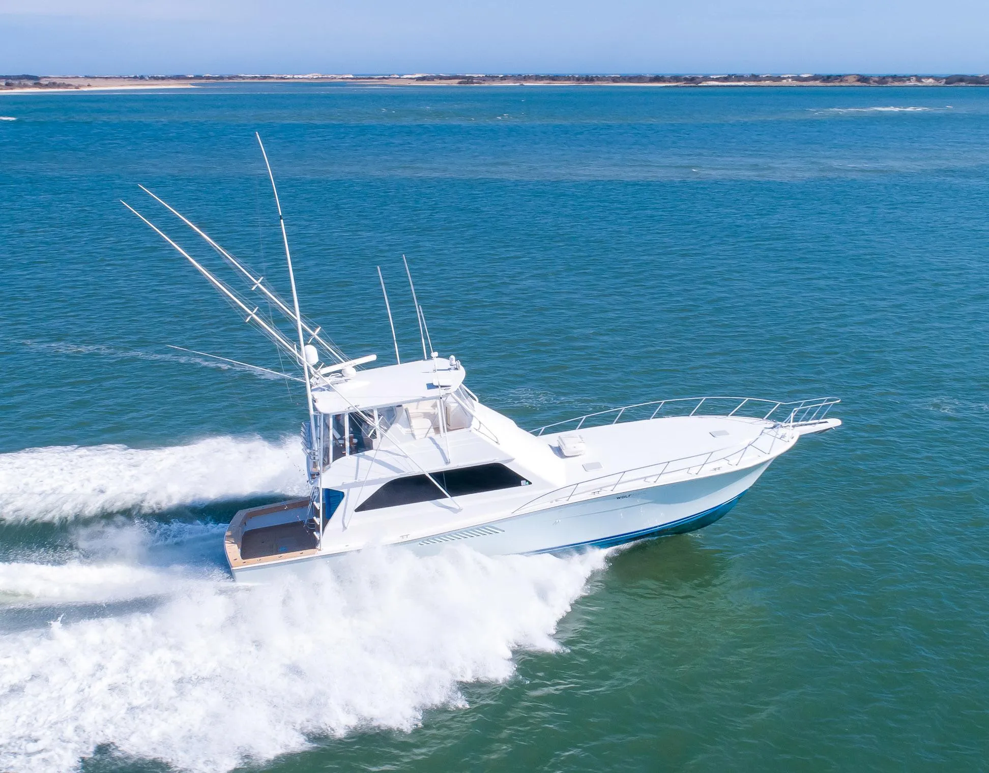 SEAHAB, a one-of-a-kind 58 Viking Convertible powered with MAN 1300hp. Engines have 2,000 hours on one rebuild and 1,100 hours on the other, 6200 hours total. December 2023, the 1,000-hour service was completed to include injectors, heat exchangers, and after coolers. All service invoices are available. SEAHAB has had a lot of updates inside and out, including a new Seakeeper, Mezzanine by Viking Service Center, Flexiteak cockpit, gunnels and flybridge deck, Koden 360 Sonar, and recent Garmin Electronics. The interior features a three stateroom three head layout with washer/Dryer. The galley and salon have recently had countertops, cooktops, carpet, subzero drawers, LED Lights, Screen TVs, Starlink, and more.