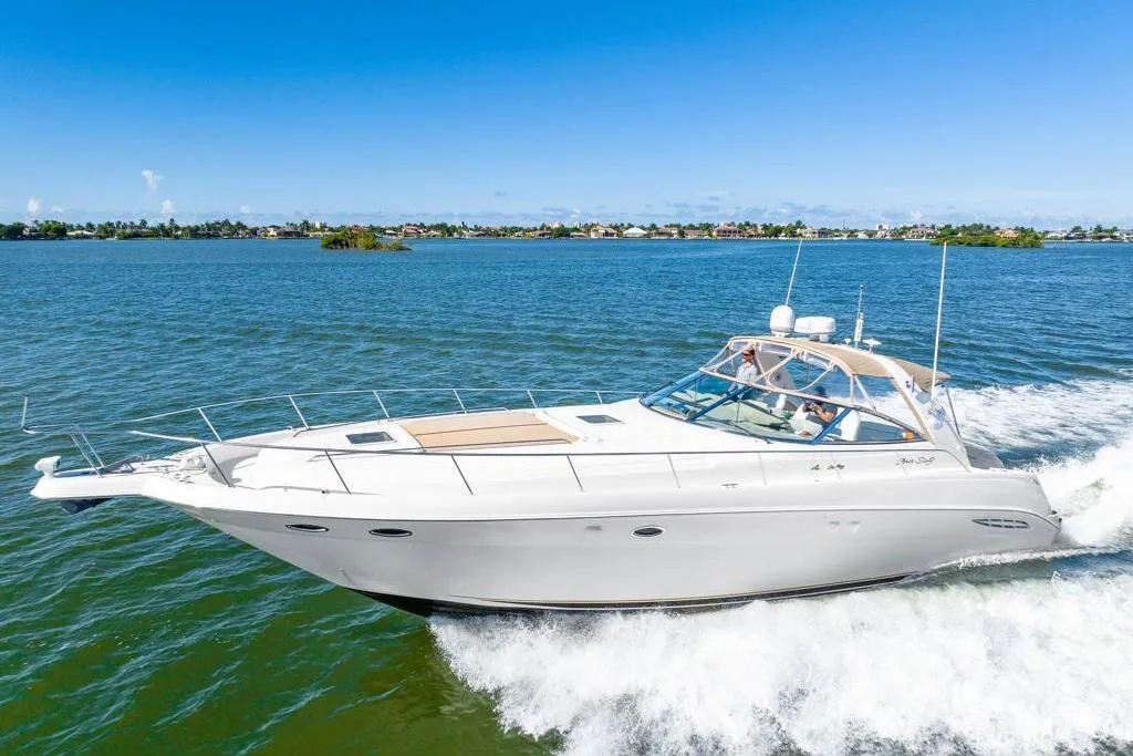 SeaRayous Relapse, powered by reliable twin 450Hp Cummins with relatively low hours, ensuring excellent performance and efficiency. This yacht is in great overall condition, well-maintained, and features multiple areas for socializing & entertaining. She is currently docked at a covered marina, providing valuable protection from the elements. A perfect blend of comfort and power for cruising enthusiasts.