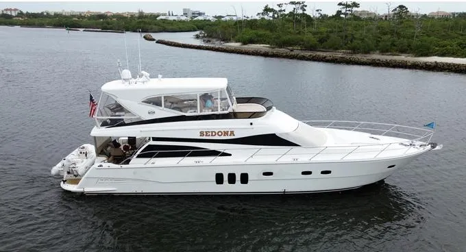 SEDONA is a Euro Style Sedan motor yacht with a decidedly North American flair. Her interior is graced with a natural cherry joinery with a high gloss finish and custom stained accents in the Master Cabin. SEDONA is full of improvements and innovations over the standard layout.