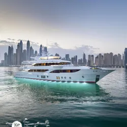 Delivering the hallmark craftsmanship of Gulf Craft’s flagship line, M/Y SEHAMIA is a Majesty 155 (2018) that pairs commanding presence with refined liveability. Designed for effortless guest flow and memorable entertaining, her huge interior volumes are matched by opulent finishes and abundant natural light across all decks.