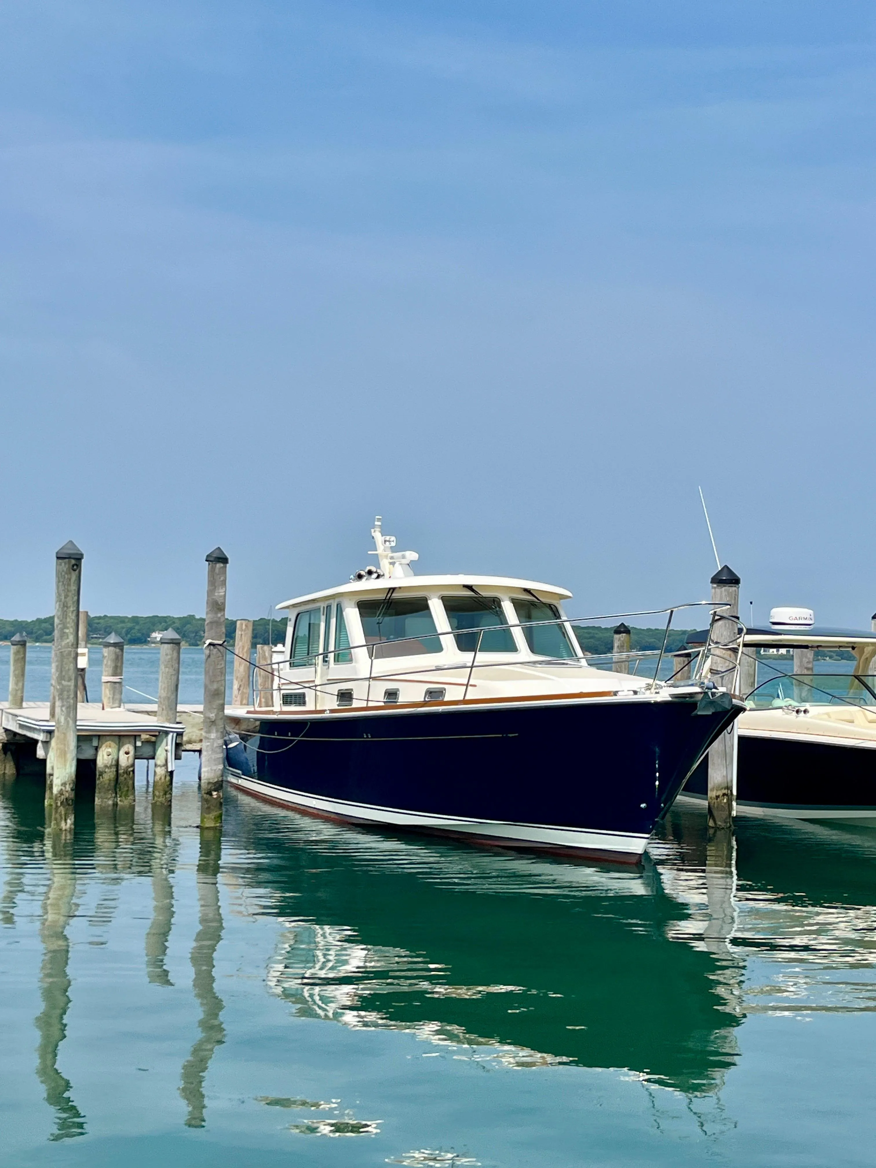 The 2010 Sabre 40 Sedan offers a blend of Downeast style, exceptional craftsmanship, and performance, making it an ideal choice for discerning cruisers. Powered by twin Cummins diesels paired with Zeus pod drives and joystick control, it delivers effortless handling and confident maneuverability. Inside, the beautifully finished interior, panoramic salon, and two-stateroom layout provide luxurious comfort for extended trips or weekend getaways. Built by one of America’s most respected boatbuilders, the Sabre 40 combines proven seaworthiness with upscale amenities, offering a cruising experience that’s both elegant and dependable.