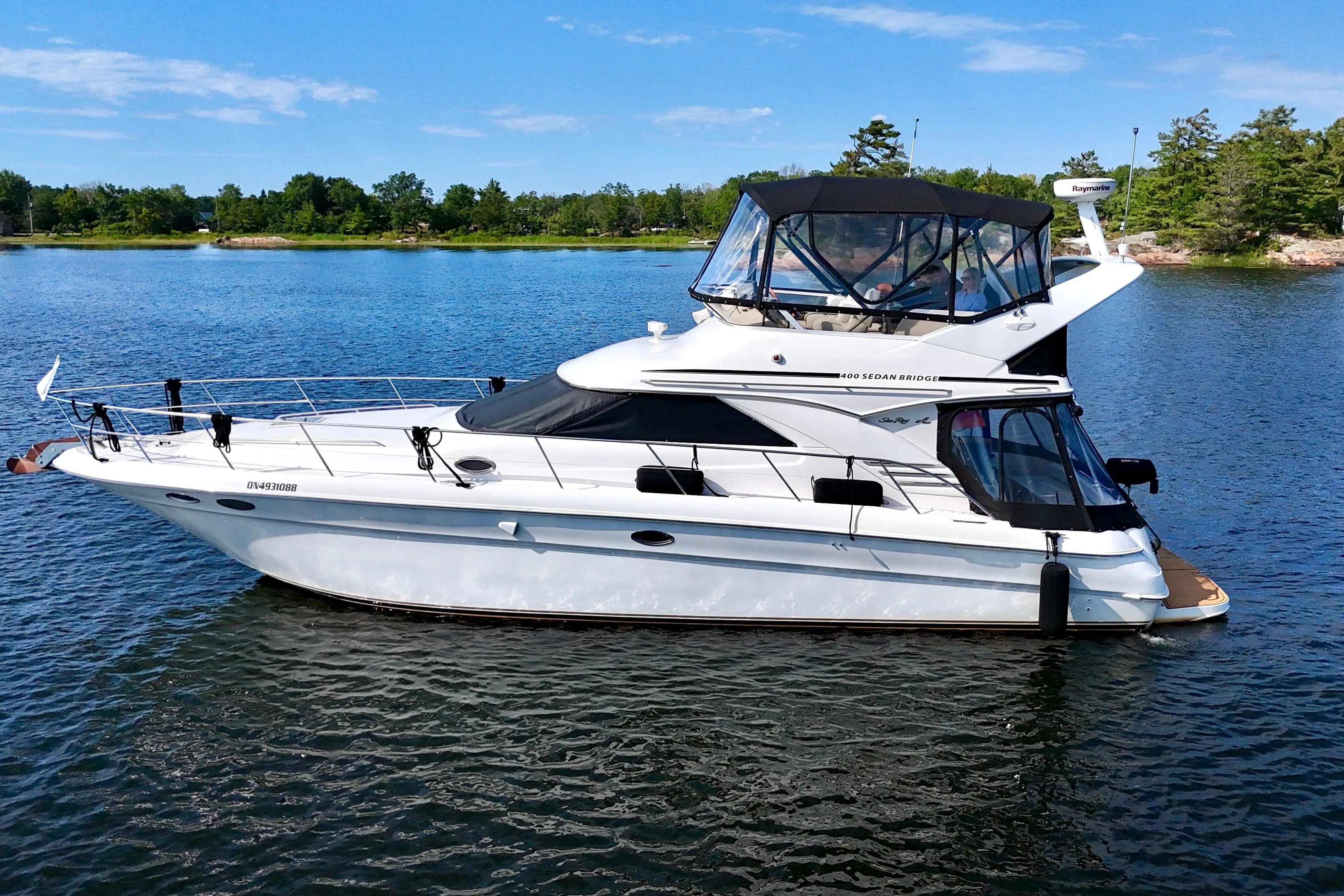 New listing August 2025! A clean, well-maintained, freshwater, Sea Ray 400 Sedan Bridge. A desirable boat and layout for cruising the Great Lakes. This example has been updated with new bridge/cockpit canvas, new interior/exterior flooring, and updated Raymarine chartplotter.